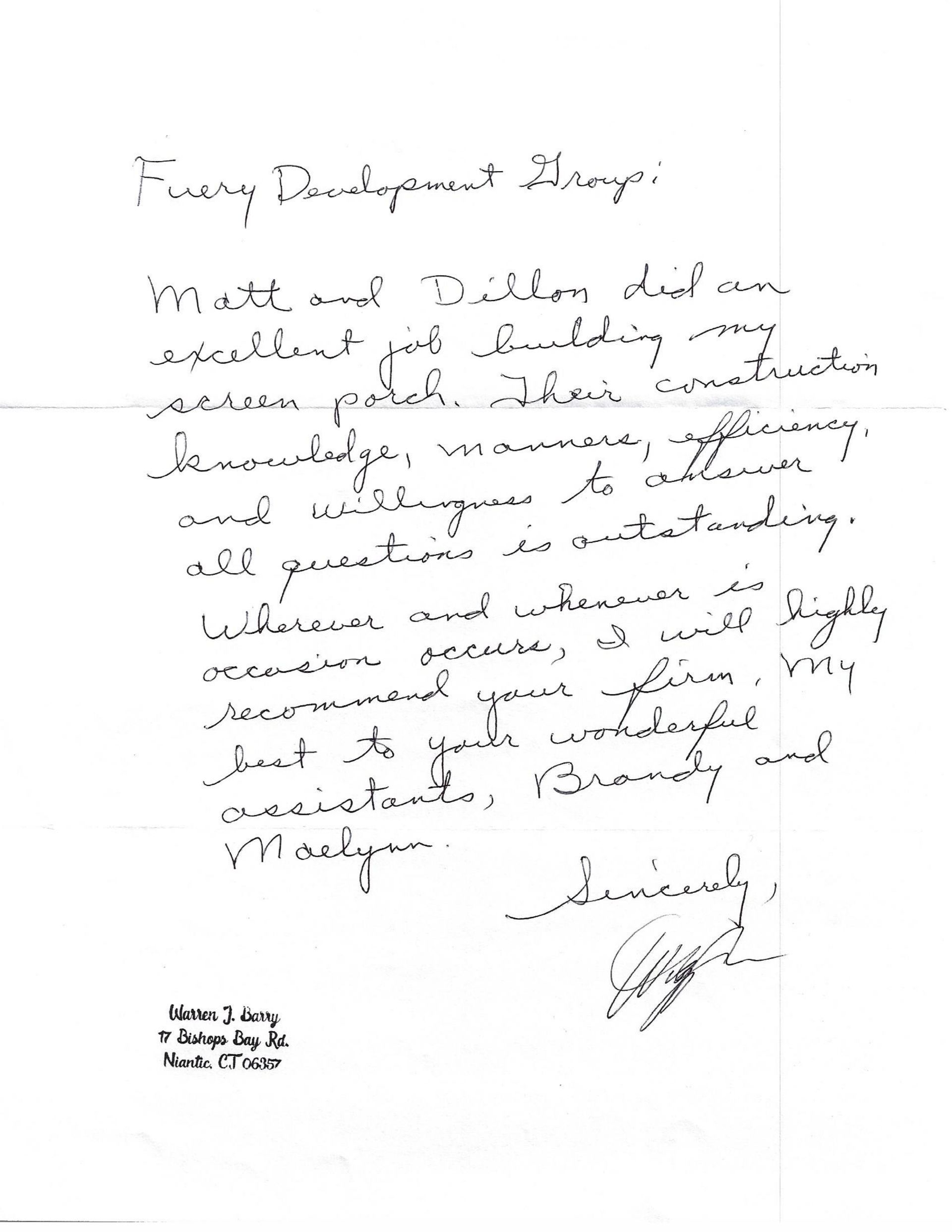 Fuery Development Group, LLC has been in business for over 25 years. Fuery Development Group, LLC offers a broad range of services including Kitchen Remodeling, Bath Remodeling, Roofs, Decks, and Additions. We specialized in ADA compliant kitchen & baths and decks. You can depend on Fuery Development Group, LLC to customized you current needs to your home to add value and beauty to your home. Our service includes a 5 year labor warranty on all roofs and a 1 year labor warranty on all other services provided by Fuery Development Group, LLC.